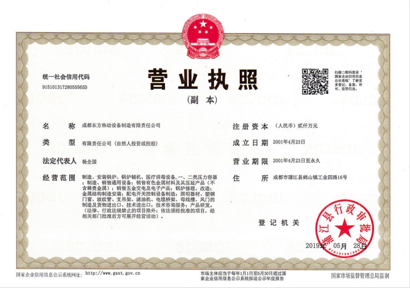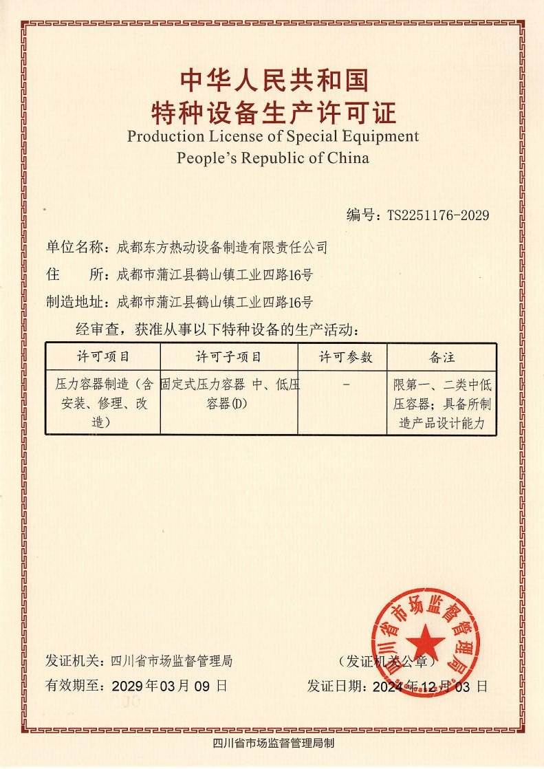 特种设备生产许可证